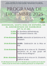 1. La inmigración de hispano-hablantes en Hamburgo (por Monika y Ramón Polanco) Fue durante el verano de 1960 cuando llegaron los primeros españoles a Hamburgo para trabajar como constructores y reparadores de buques en los astilleros Blohm + Voss y Howaldtswerke-Deutsche Werft GmbH. Estas empresas les habían otorgado un contrato laboral por un año. Unos meses después llegaron trabajadoras, algunas a una fábrica de chocolates y otras a una enlatadora de pescado. El grupo creció y se hizo necesaria su atención pastoral. A tal efecto, al iniciar el año 1962 vino desde Palencia (España) el sacerdote Euquerio Bragado y acompañó a los inmigrantes hasta fines de 1964. Le sustituyó el sacerdote Ramón Suárez. Éste había acompañado ya durante dos años al grupo de inmigrantes asentado en Neumünster. Entre 1970 y 1990 el sacerdote Suárez contó con el apoyo del capellán Jerónimo López, primero y, luego, del capellán José Pellicer. Desde el inicio y hasta 1967 la Misión se situó en Wilhelmsburg, St. Bonifatiusstraße 1. Aquí se instituyó la celebración de la Santa Misa dominical a las 12:00 horas, que aún hoy continúa. La sede pasó en 1967 a Borgfelder Str. 76 y estuvo allí hasta el verano de 1990, cuando se trasladó a su actual ubicación en Holzdamm 22. A partir del año 1978 y hasta el año 2008, la Misión contó con la colaboración de tres religiosas pertenecientes a la comunidad “Hermanas del Ángel de la Guarda”. Además, durante la década de los setenta, como en Dortmund, Stuttgart y otras ciudades alemanas, la Misión de Hamburgo estuvo apoyada por el movimiento “cursillos de cristiandad”, cuya actividad propició la configuración de diversas asociaciones de padres de familia. Éstas contribuyeron muy efectivamente en el proceso de unidad de muchos de los migrantes españoles. Servicio especial atendido desde la sede de la Misión era también la asistencia social. Al frente de dicho servicio estuvieron: Elvira Fahl (1962-1969), Clemencia González (1969-1983) y Monika Polanco (1983-2006) con Magdalena Fernández (1993-2001). A partir del año 2000, la dependencia arquidiocesana de Caritas unificó todo el servicio social y lo instaló en las oficinas de Danziger Straße 66. El movimiento migratorio se ha incrementado a causa de lo difícil de la situación política en algunos países latinoamericanos. Así, por ejemplo, tras el derrocamiento de Salvador Allende a fines de 1974, muchos chilenos pidieron asilo. Luego, llegó un buen número de peruanos y ecuatorianos. Y, actualmente, la comunidad católica de idioma español en Hamburgo cuenta también con miembros pertenecientes a todos los países latinoamericanos. 2. Los jóvenes de nuestra misión (por Thorsten Andress) Quien se detiene a observar el fenómeno migratorio europeo notará en seguida, como dato básico destacable, el nutrido traslado de españoles a Alemania. Eso sucedió, sobre todo, durante las décadas 60 y 70 del siglo pasado. Efecto directo fue el surgimiento de la primera generación de españoles nacidos en este país. Por supuesto, los progenitores, se preocuparon por la práctica personal de la fe católica y propiciaron para sus hijos la oportuna preparación catequética requerida para la recepción de los sacramentos de la Comunión y de la Confirmación. Algunos de los catequizandos continuaron los encuentros y así, en la década de los 90, surgió el primer grupo de jóvenes católicos españoles. En 1998 se unió al grupo un joven salvadoreño y desde entonces el grupo fue creciendo con la presencia de otros jóvenes latinoamericanos. Variadas fueron las actividades realizadas para impulsar y fortalecer la unidad del grupo. Se puede mencionar, por ejemplo: el viaje a Amsterdam (Holanda), los encuentros en diversos lugares recreativos de Hamburgo, o la fiesta juvenil en la sede de la Mision. En el verano del año 2001, una gran mayoría de los miembros retornaron a España para emprender una nueva etapa de sus vidas, incentivada sea por estudios universitarios, sea por formación profesional. Consecuencia: el primer grupo de jóvenes católicos hispanohablantes se dispersó. En el año 2006, tras cinco años de pausa, tres de los integrantes antiguos acordaron reorganizar el grupo. Mediante folletos repartidos en las iglesias donde se celebra la Misa en español, en colegios y en universidades, invitaron a los jóvenes a encontrarse. La respuesta fue positiva y pronto se pudo organizar excursiones para visitar ciudades alemanas. En efecto, viajamos en Mayo de 2006 a Bremen y en Octubre de 2007 a Kiel. Desde 2009, los viernes a partir de las 19:30 horas, el grupo "Juventud Unida de la Misión" (JUM) congrega, en nuestra sede de Holzdamm 22, a los jóvenes para compartir sus experiencias y para tratar de conseguir los objetivos indicados a continuación: